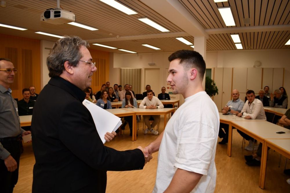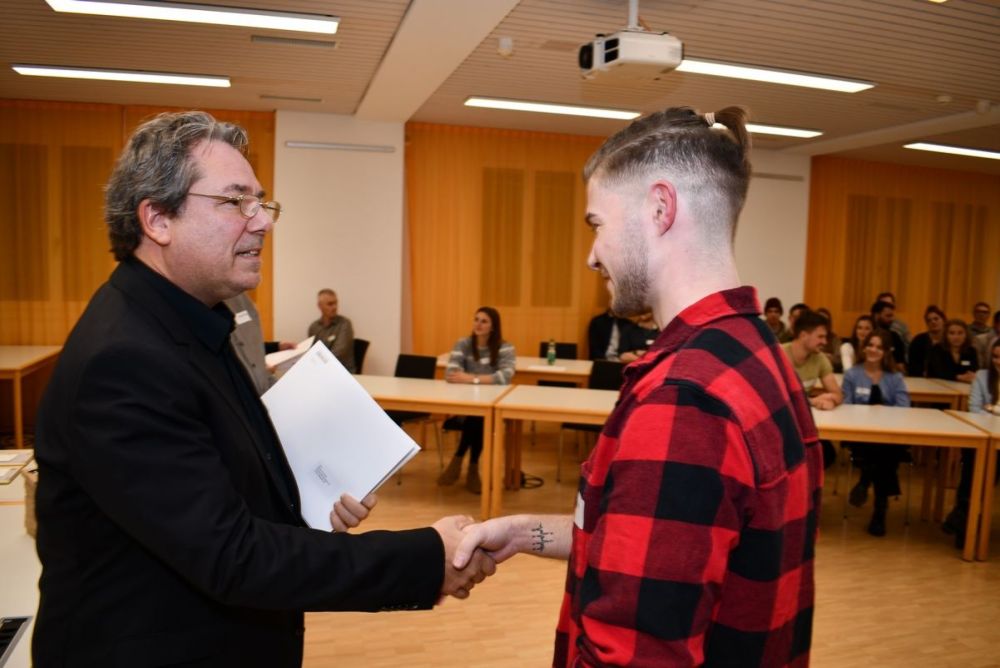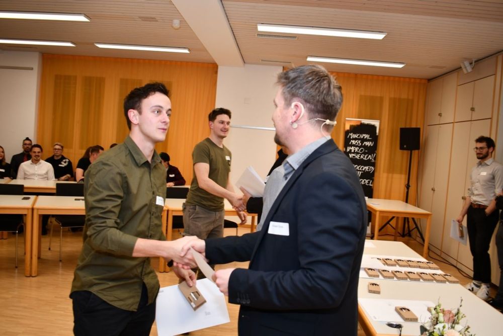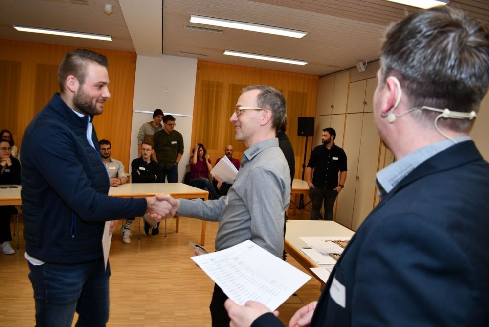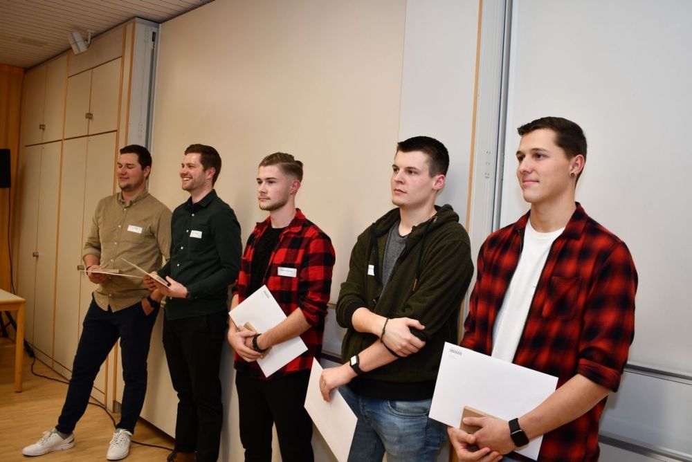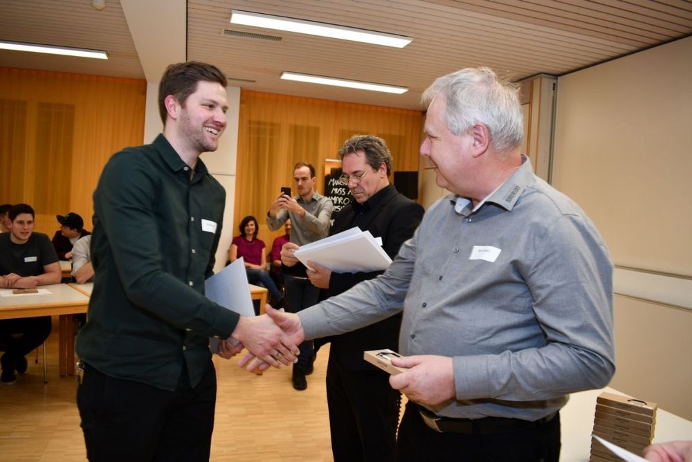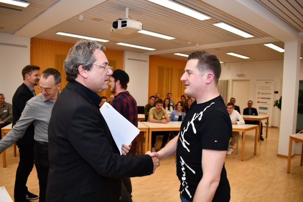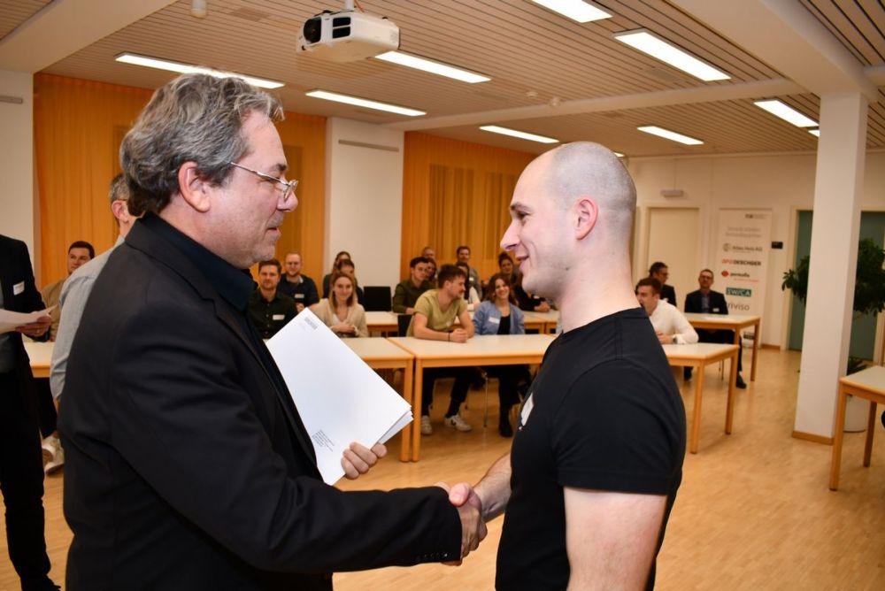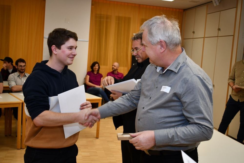 Drei Diplomanden wurden für ihre ausgezeichneten Leistungen geehrt. Mit einem Glanzresultat (Note 5.9) hat Nico Luginbühl die beste Projektarbeit aller Absolventen der HFB verfasst. Mit der Note 5.1 hat Joel Gegenschatz die Prüfungen im Frühling als bester Absolvent der HFB bestanden. Bei der Prüfung im Herbst hatte Reto Kempf (Note 5.5) die Nase vorn.