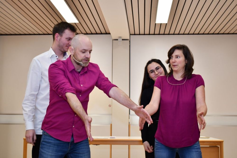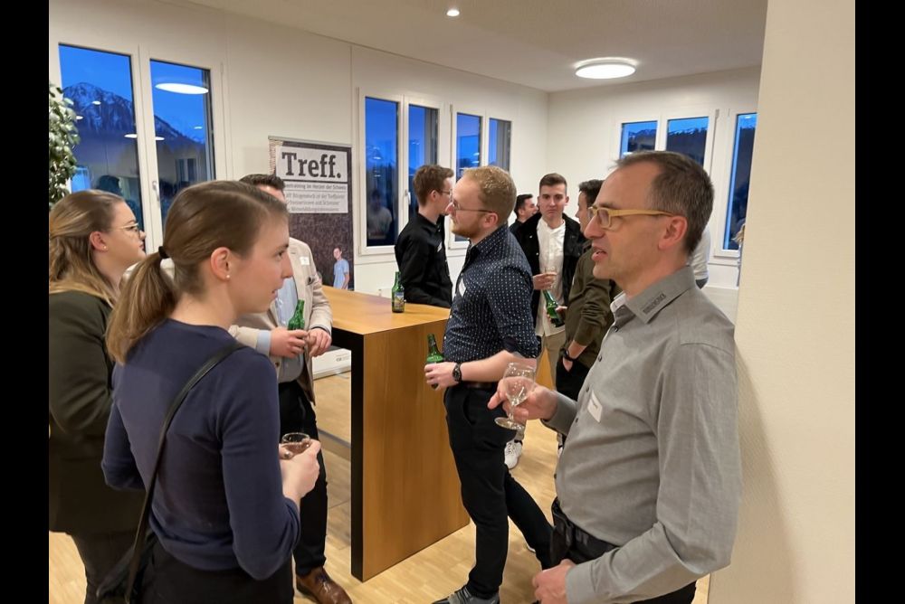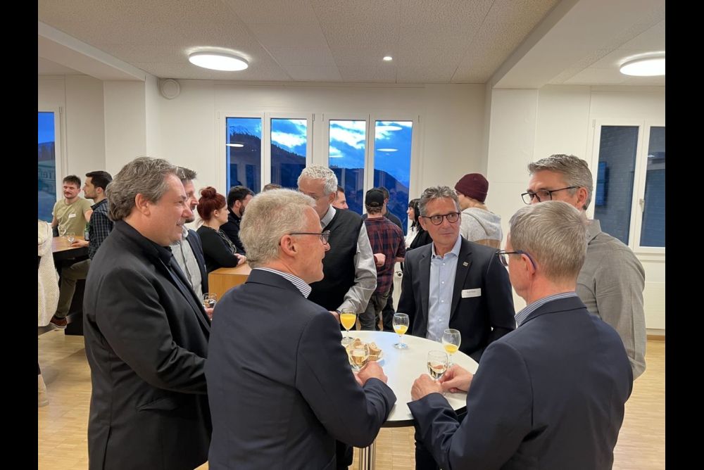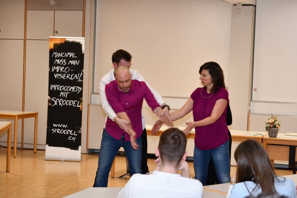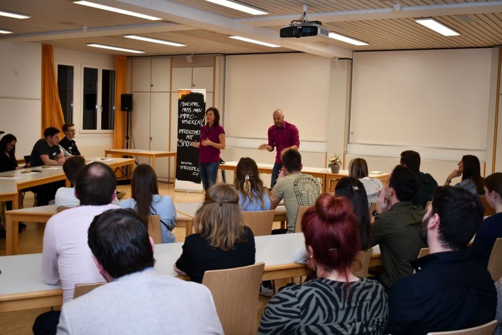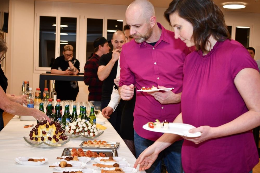 Ganz grosse Improvisation zeigte die Gruppe «sproodel». Inspiriert durch die Zuschauenden und den Anlass improvisierten Manuela Mühlemann und Beny Schnyder unterhaltsame Theaterszenen und sorgten für Auflockerung. Im Anschluss wurde in stimmungsvollem Rahmen mit Weggefährten angestossen, gefeiert, diskutiert und gelacht.